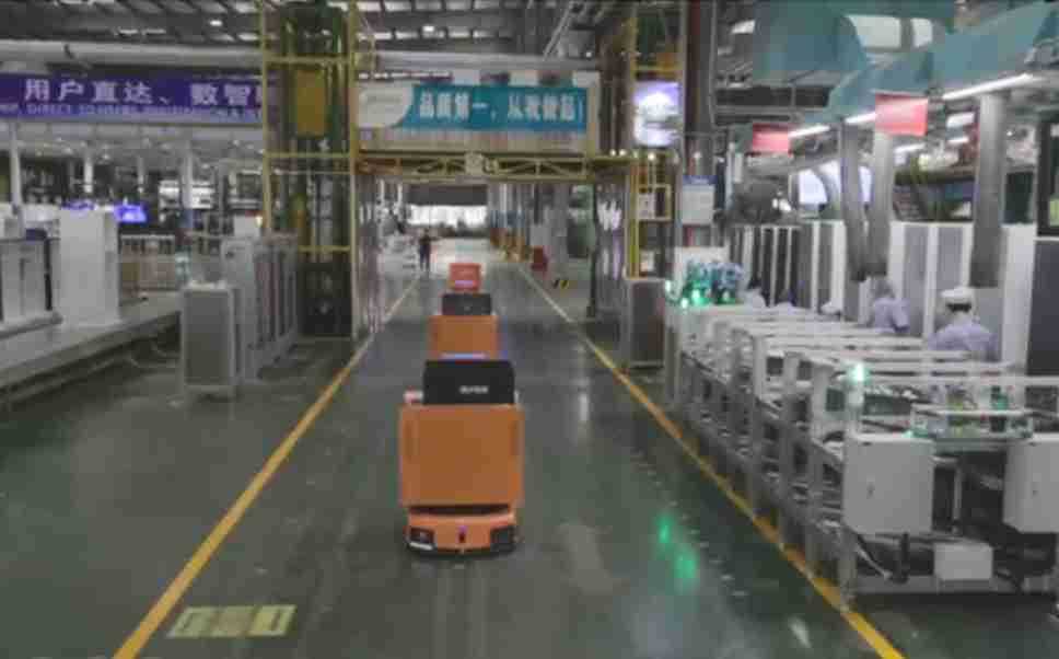 为车载冰箱物流配送打造的智能解决方案,,包含产中物流通过潜伏举升AMR搬运至线边,,,产后成品物流智能仓储,,,流程包含产中物流智能齐套入库,,线边安灯叫料AMR智能配送至线边,,,成品入库、、出库,,,,通过无人堆高车机器人,,智能仓储管理替代人工作业管理,,,实现更高存储、、更高效率、、、更具柔性化的解决方案。。。