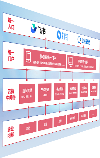 对协作平台提供支持服务,,,支持企业应用与协作平台对接,,,包含组织同步、、、消息集成、、待办集成等。。。。支持目前主流的协作平台:钉钉、、企微和飞书。。